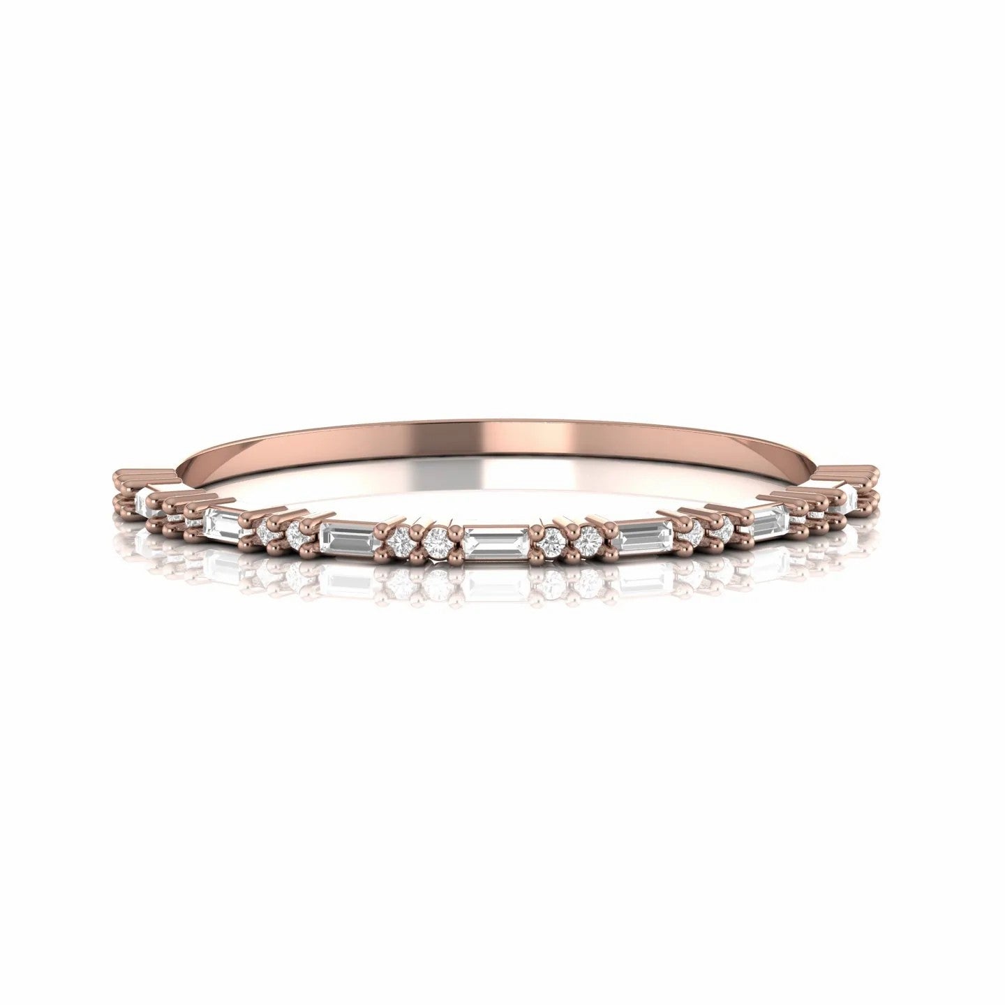0.22 Carat Baguette and Round Natural Diamond Stackable Ring