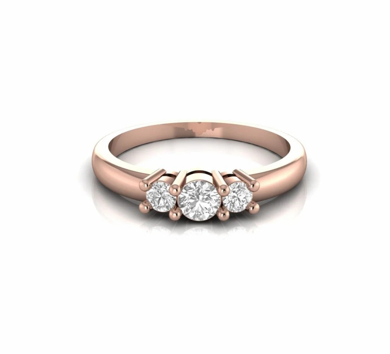 0.44 Carat Three Stone Round Natural Diamond Ring