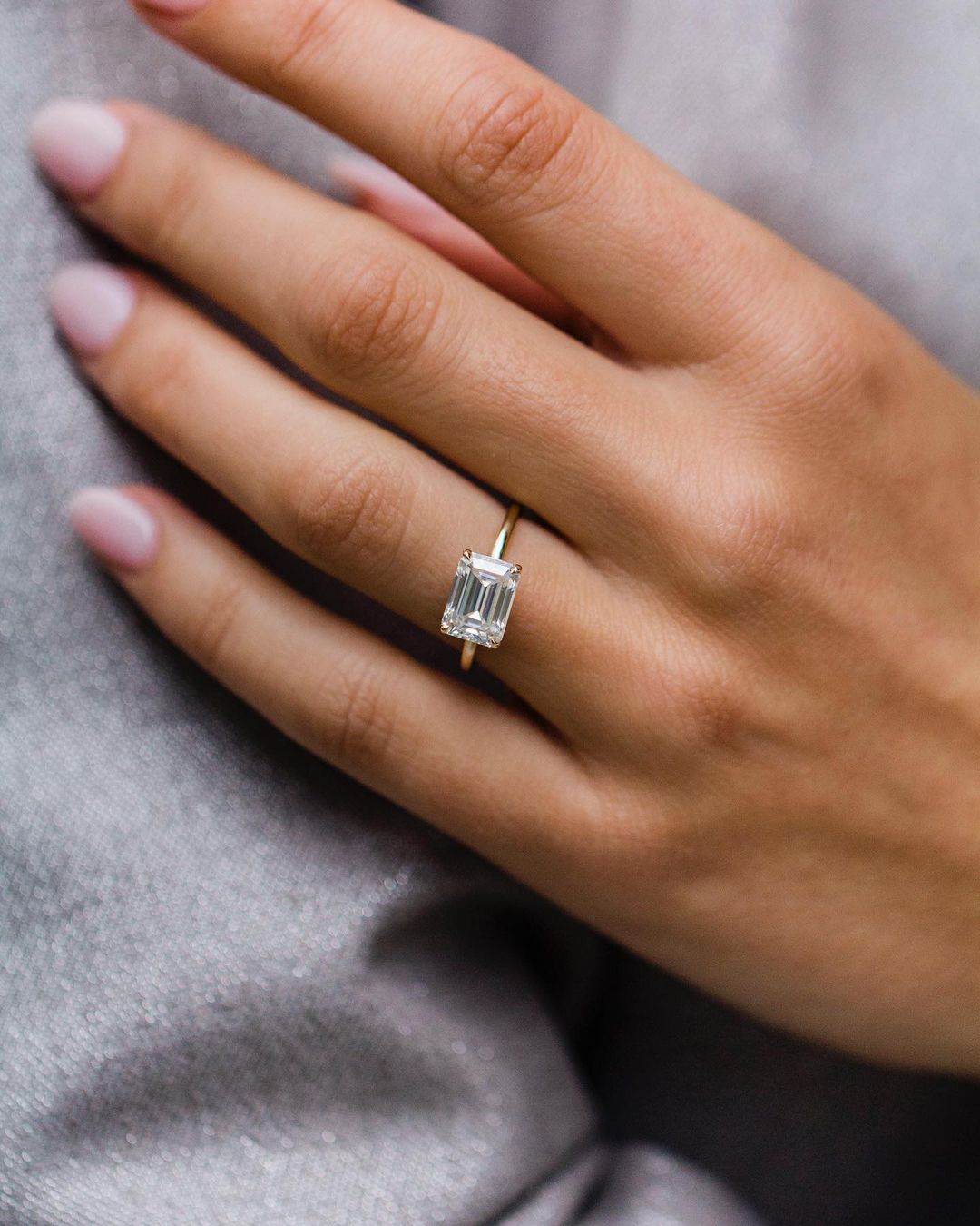 - 9x6.5mm Emerald Cut, Modern White Natural in a 14k Yellow Gold