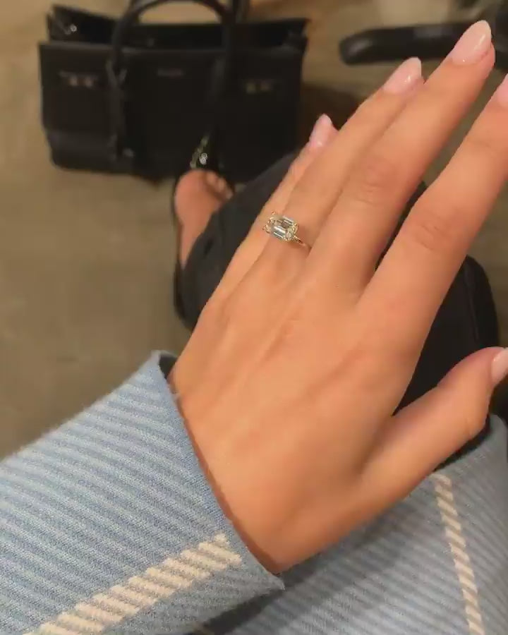 2.5 Carat Natural Solitaire Emerald Cut Diamond Gold Ring