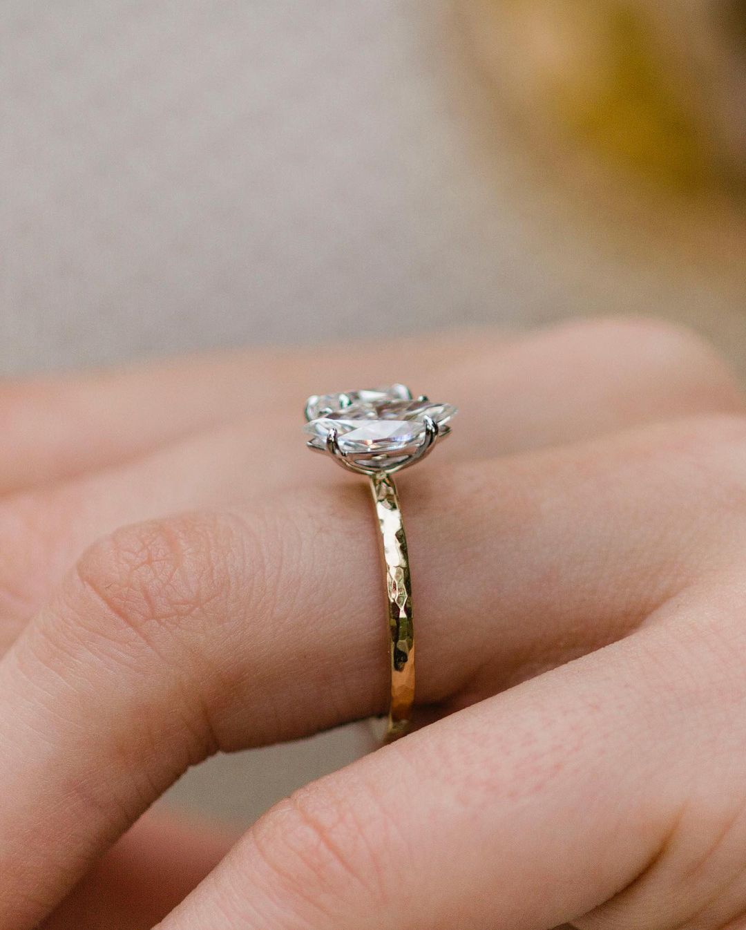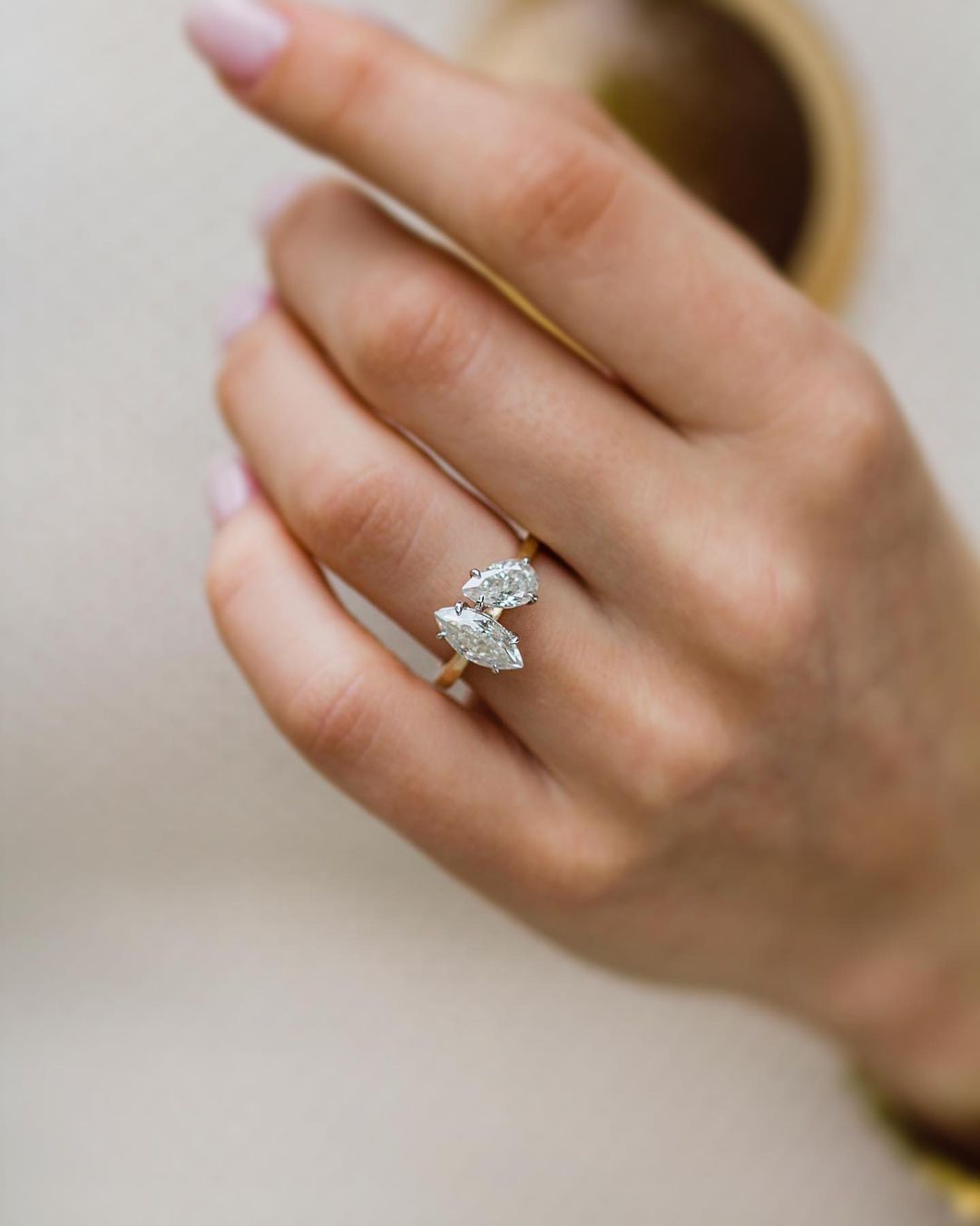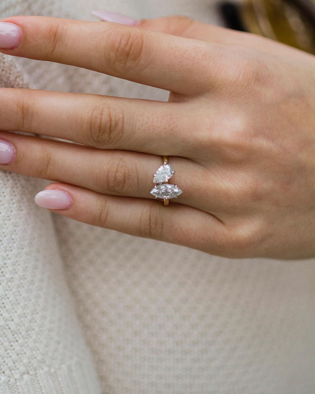 - 8.25x5mm crushed ice hybrid pear cut and 11x5mm Marquise cut modern White Natural in Two-Tone 14k Two-Tone White And Yellow Gold Setting