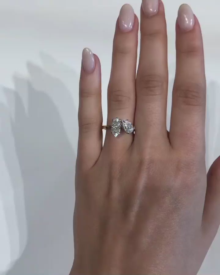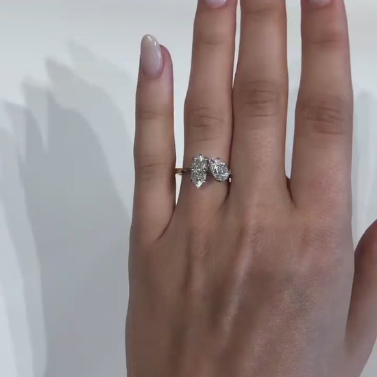 2.6 Carats Natural Marquise and Pear Diamond 14K Gold Ring