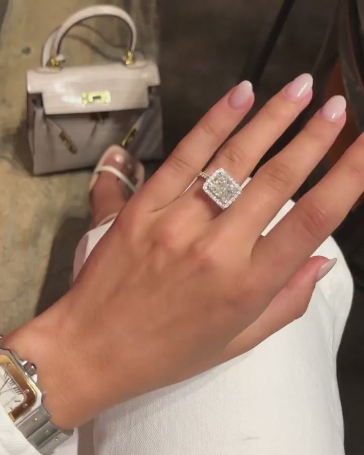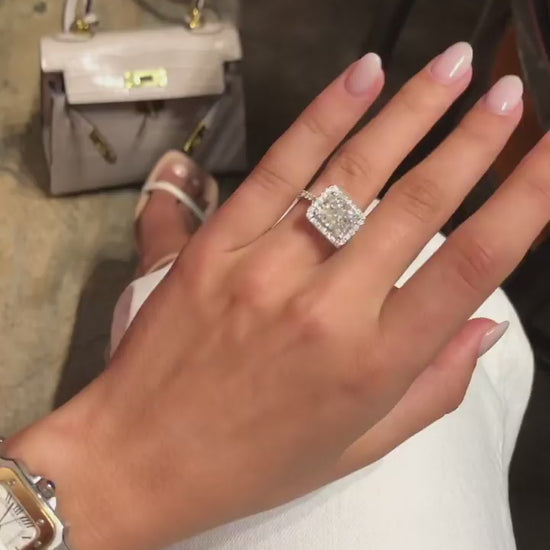 3.8 Carat Natural Hybrid Radiant Cut Diamond Gold Ring