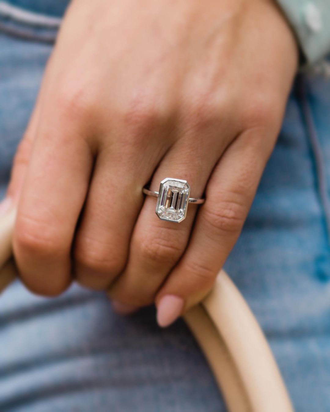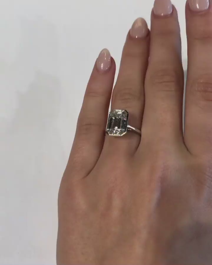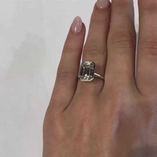 4.6 Carats Center Emerald Cut Natural Diamond 14K Gold Ring