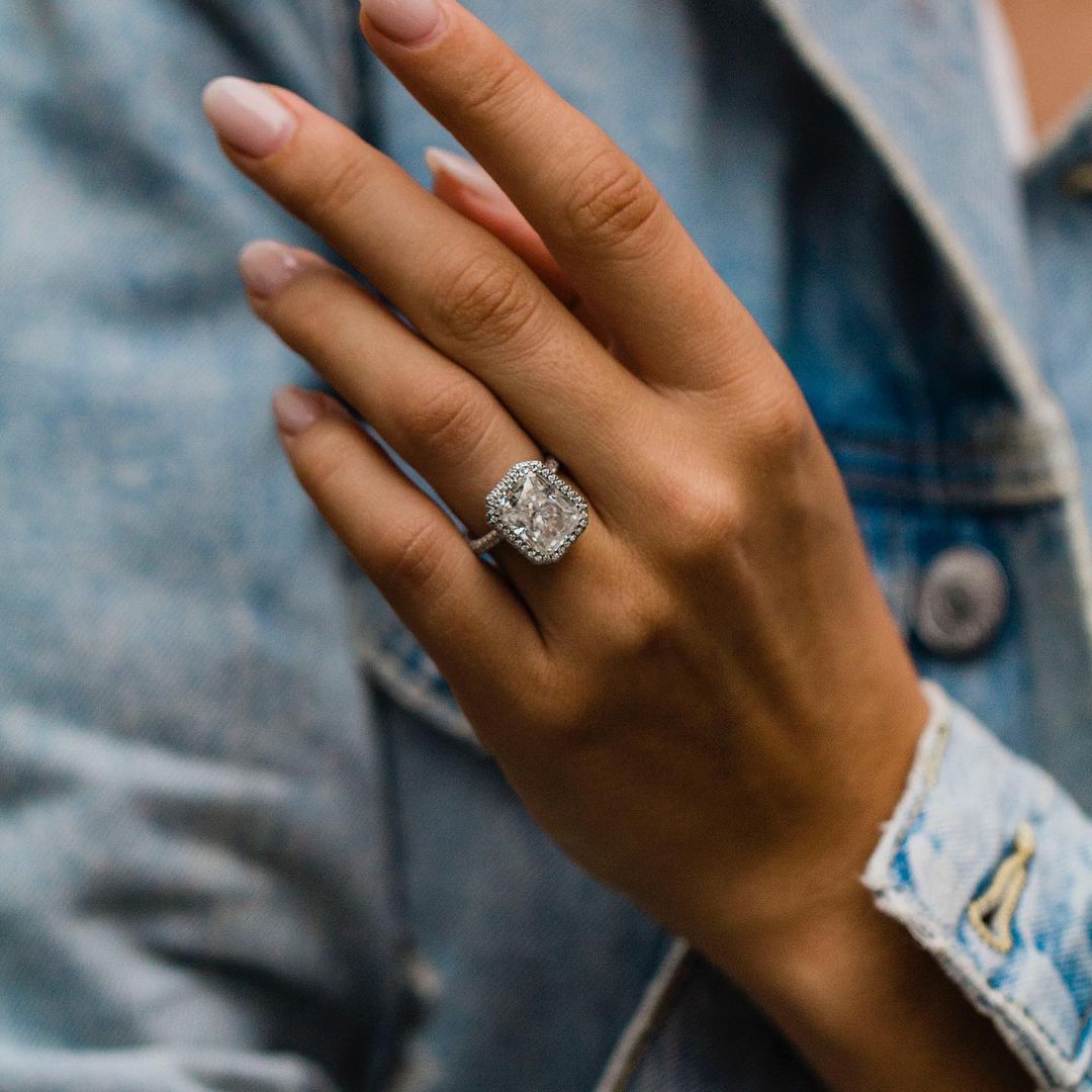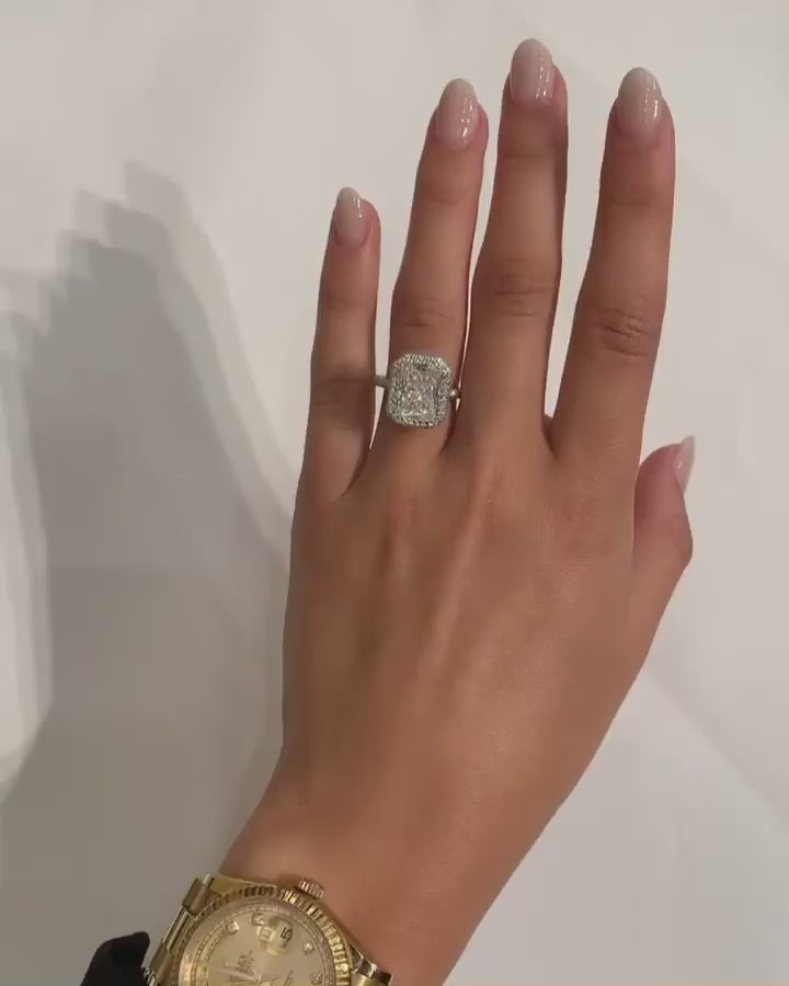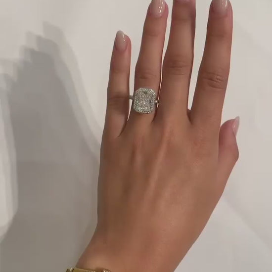 5.3 Carat Natural Diamond Crushed Ice Hybrid Radiant Cut Diamond Gold Ring