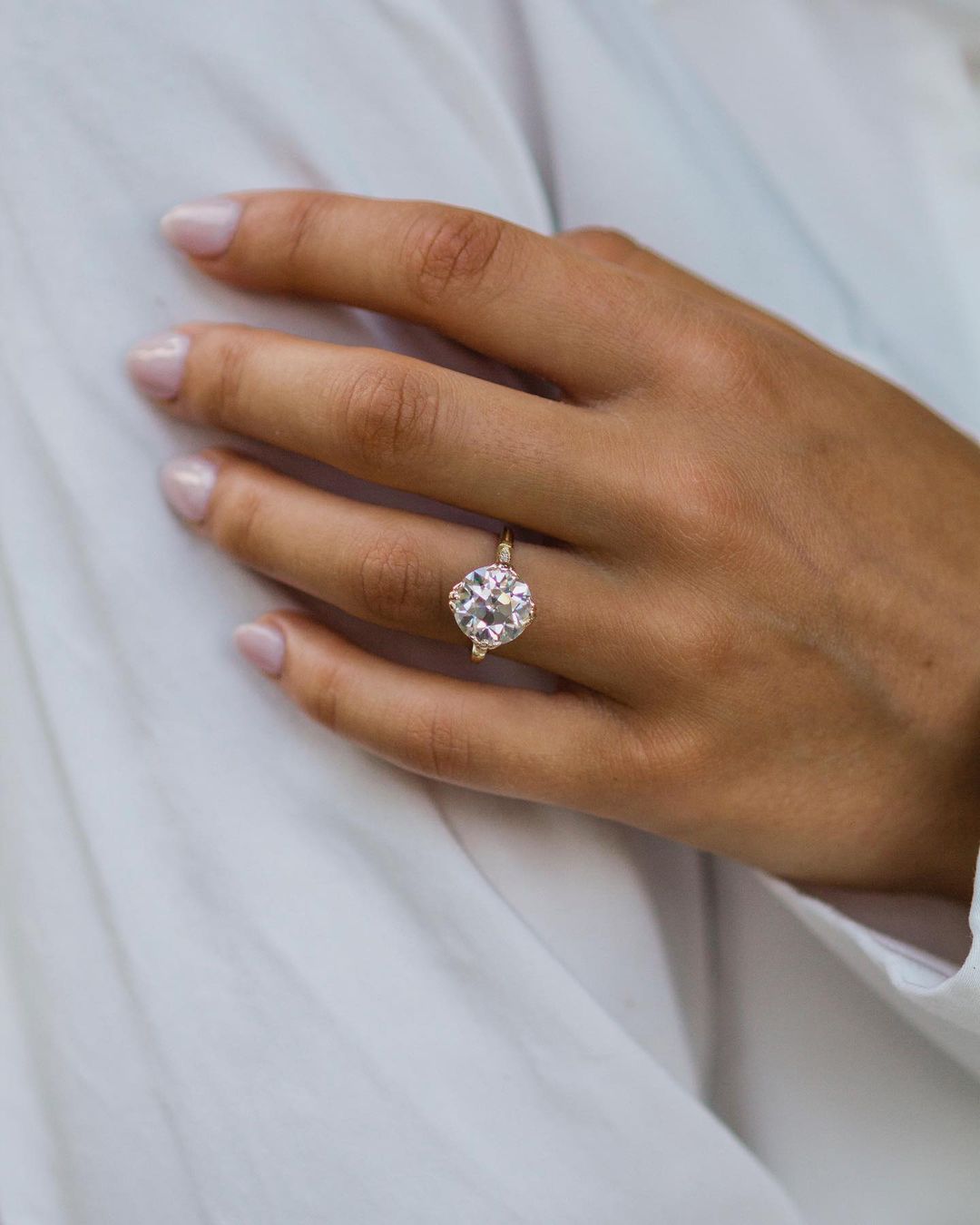 5 Carat Center Round Natural Diamond 14K Gold Ring
