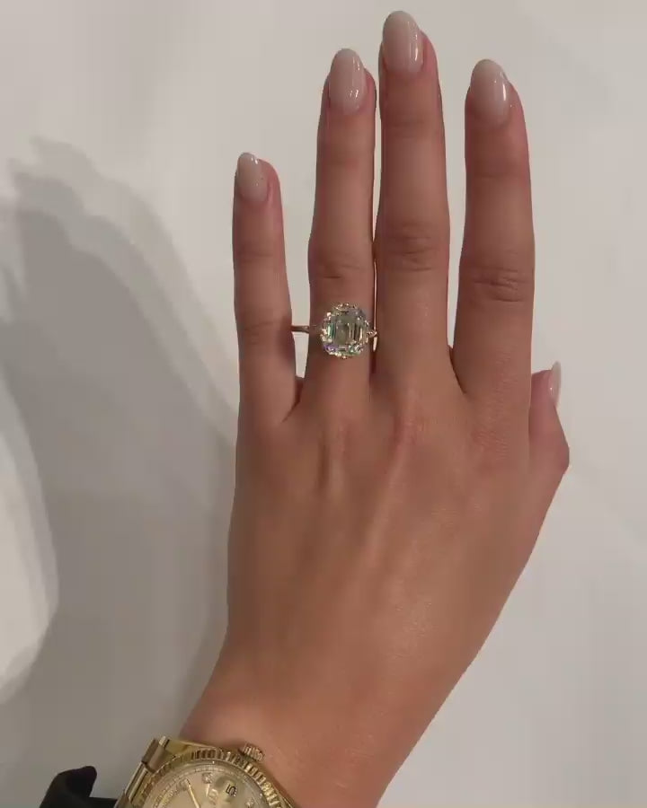 6.5 Carats Center Asscher Cut Natural Diamond 14K Gold Ring